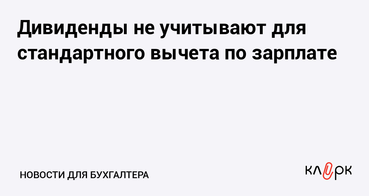 Дивиденды не учитывают для стандартного вычета по зарплате
