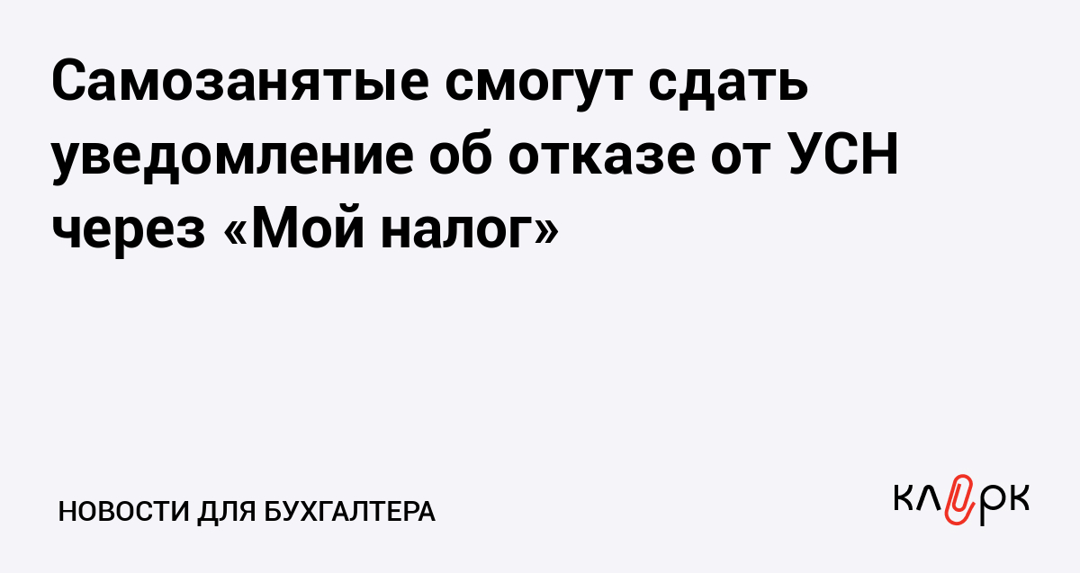 Самозанятые смогут сдать уведомление об отказе от УСН через «Мой налог»