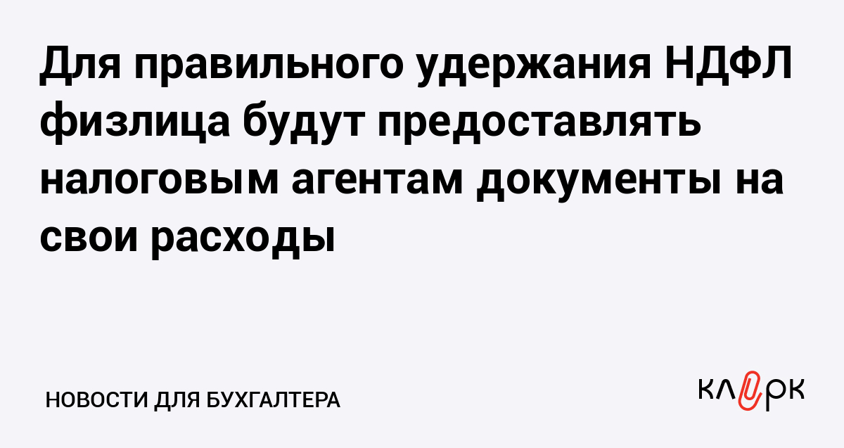 Для правильного удержания НДФЛ физлица будут предоставлять налоговым агентам документы на свои расходы