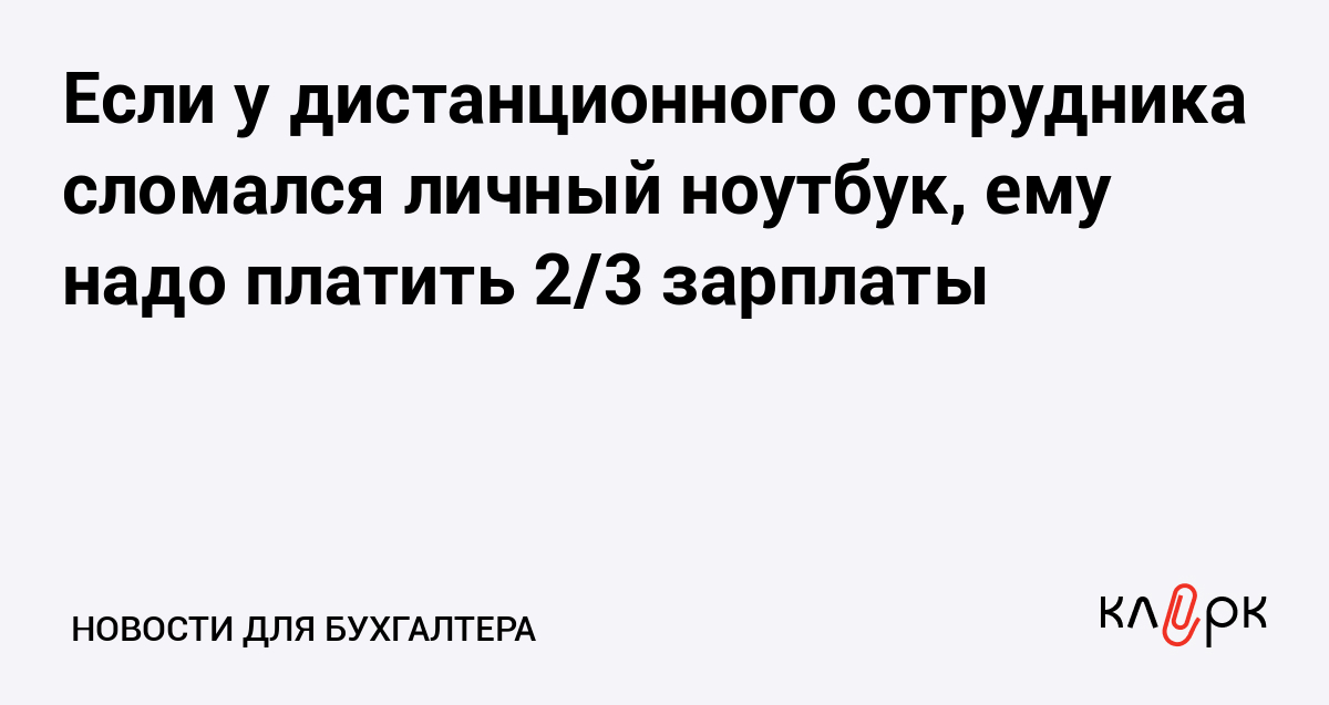 Если у дистанционного сотрудника сломался личный ноутбук, ему надо платить 2/3 зарплаты