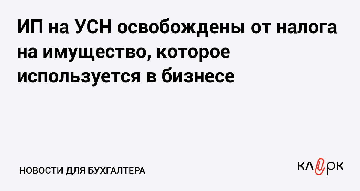 ИП на УСН освобождены от налога на имущество, которое используется в бизнесе