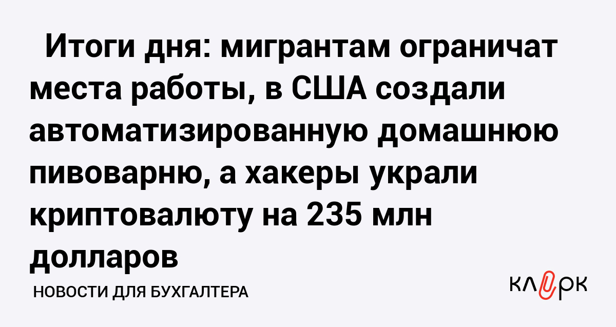 ⚡️ Итоги дня: мигрантам ограничат места работы, в США создали автоматизированную домашнюю пивоварню, а хакеры украли криптовалюту на 235 млн долларов