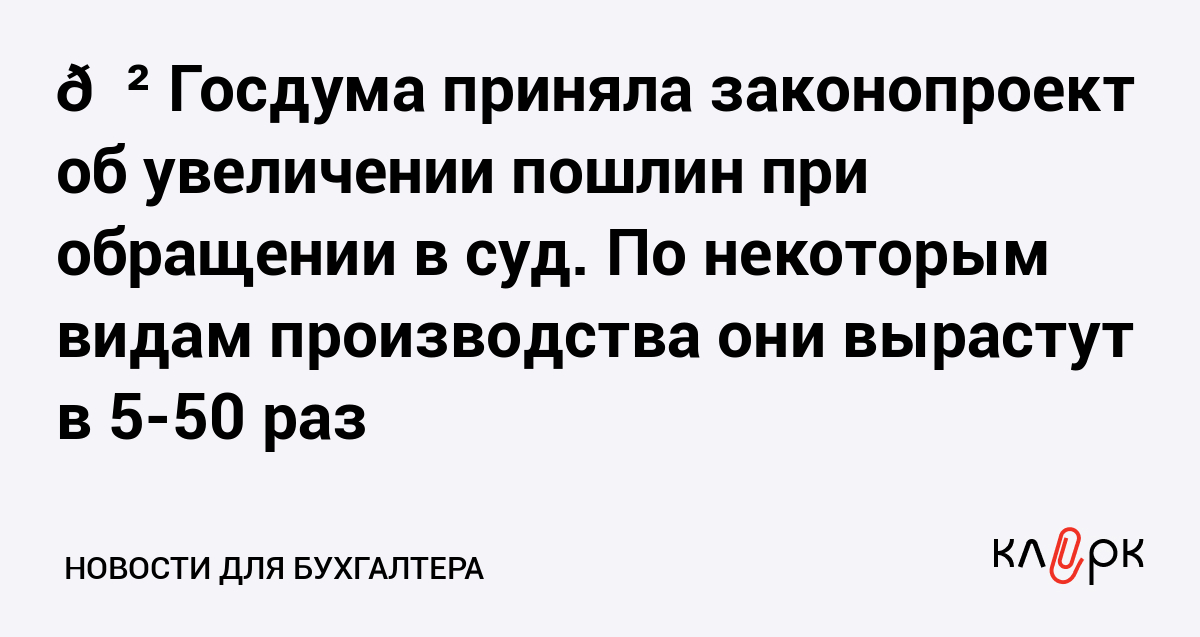 😲 Госдума приняла законопроект об увеличении пошлин при обращении в суд. По некоторым видам производства они вырастут в 5-50 раз
