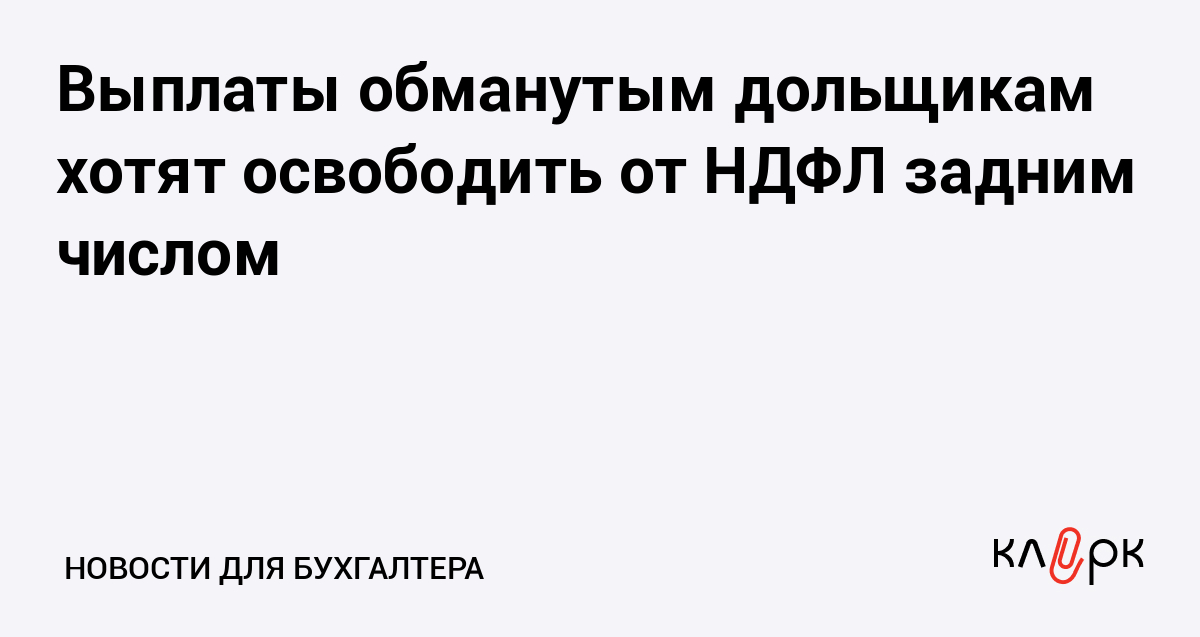 Однако деньги из бюджета регионов начали привлекать с 2020 года, поэтому освободить от НДФЛ планируют выплаты, которые были получены дольщиками именно с 1 января 2020 года. То есть освобождение от НДФЛ будет задним числом.
