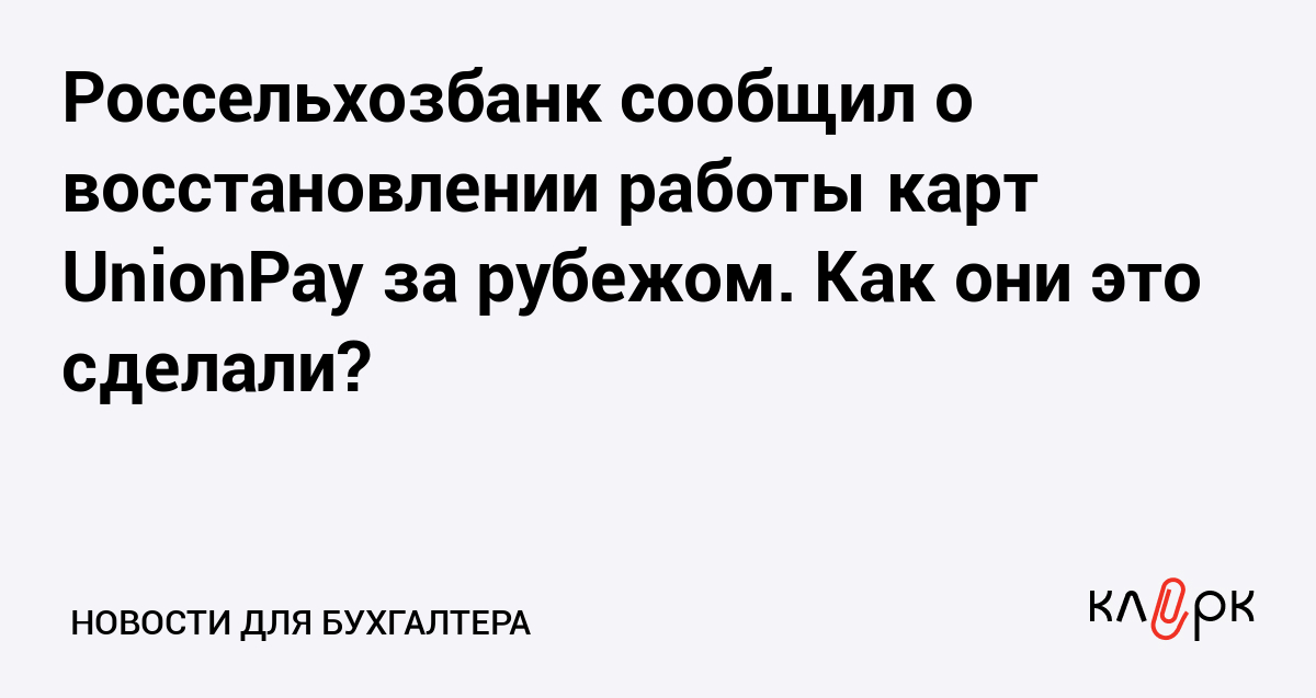 Россельхозбанк сообщил о восстановлении работы карт UnionPay за рубежом.