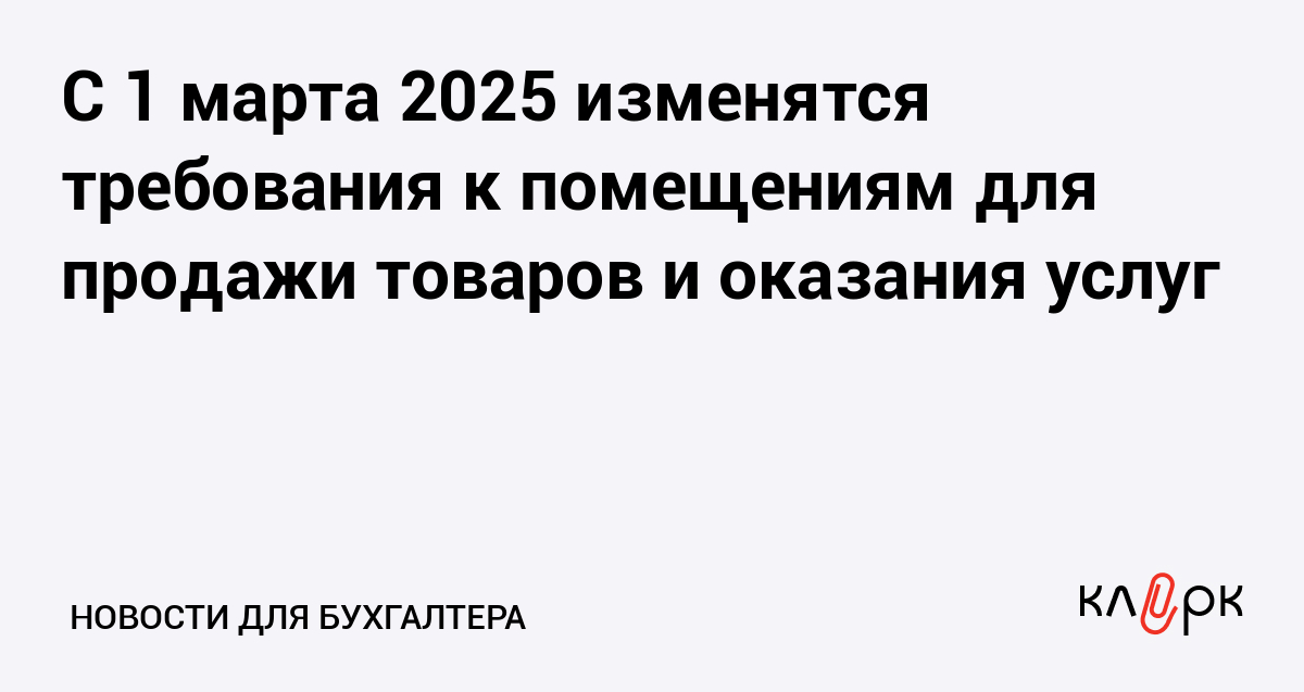 С 1 марта 2025 изменятся требования к помещениям для продажи товаров и оказания услуг