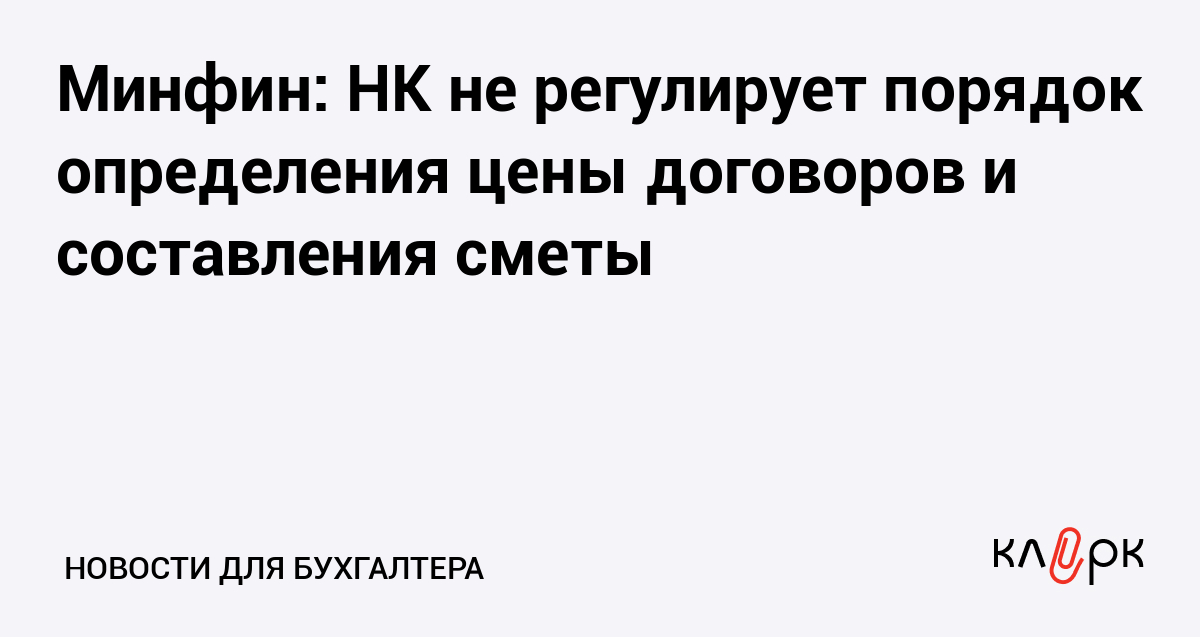 При этом НК не регулирует вопросы, касающиеся порядка определения цены договоров и составления сметы, заметил Минфин.