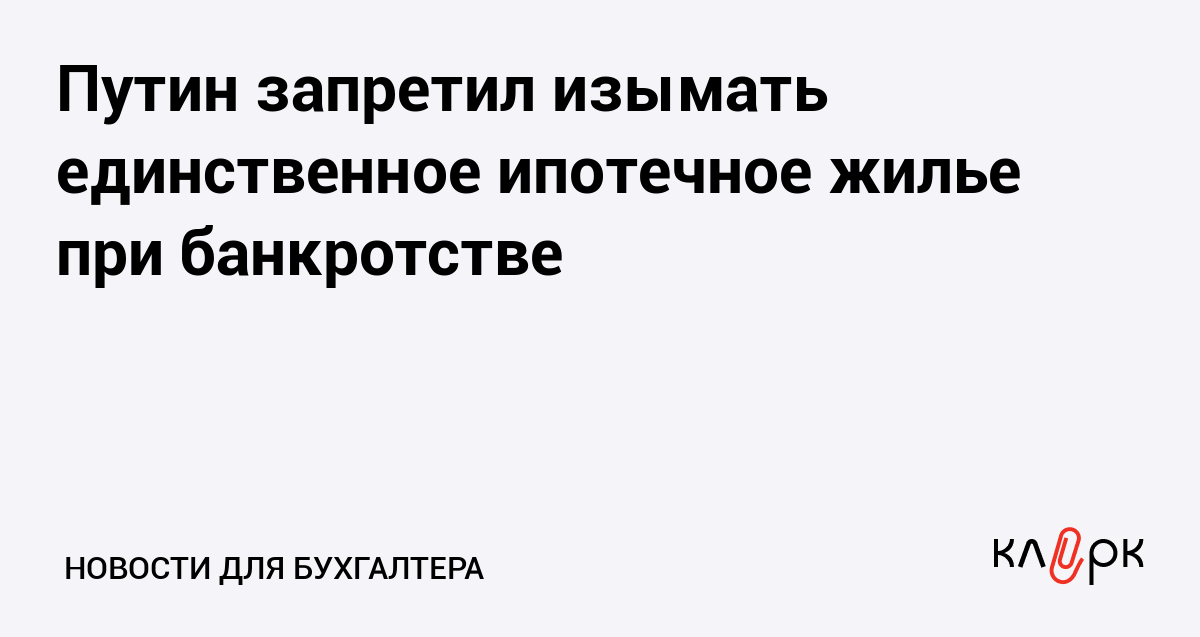 Владимир Путин подписал закон, который запрещает за долги изымать единственное жилье при банкротстве, даже если оно было взято в ипотеку.