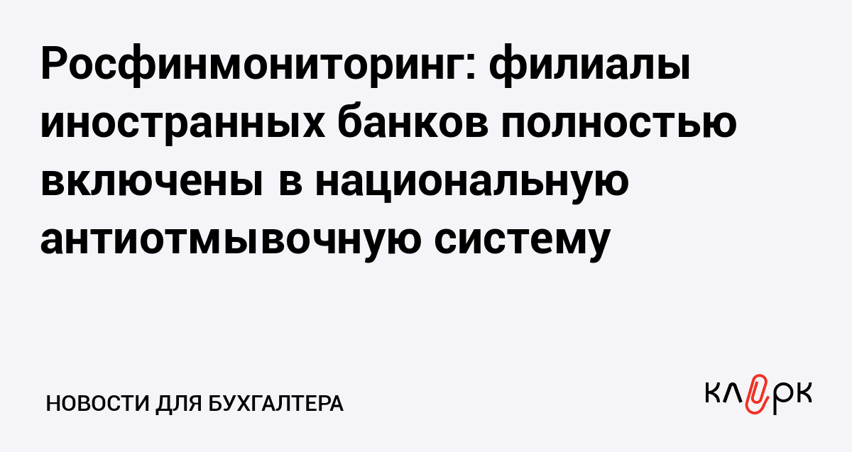 Росфинмониторинг отмечает, что филиалы иностранных банков становятся полноценными субъектами национальной системы противодействия отмыванию преступных доходов и финансированию терроризма и распространения оружия массового уничтожения.