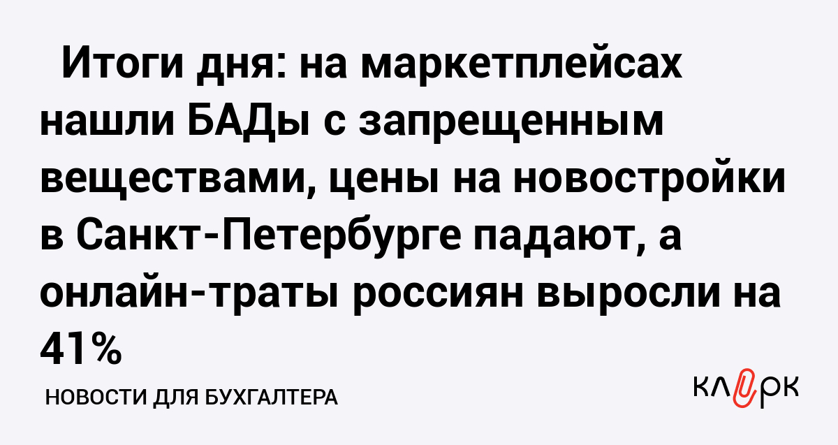 ⚡️ Итоги дня: на маркетплейсах нашли БАДы с запрещенным веществами, цены на новостройки в Санкт-Петербурге падают, а онлайн-траты россиян выросли на 41%