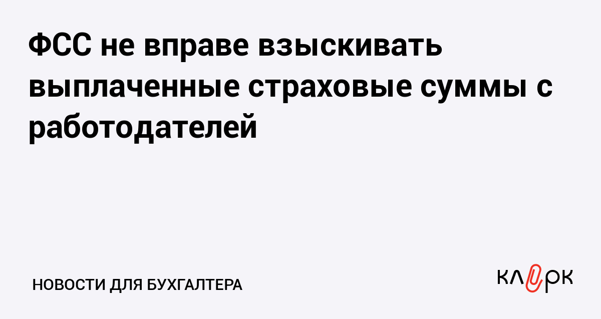 ФСС не вправе взыскивать выплаченные страховые суммы с работодателей