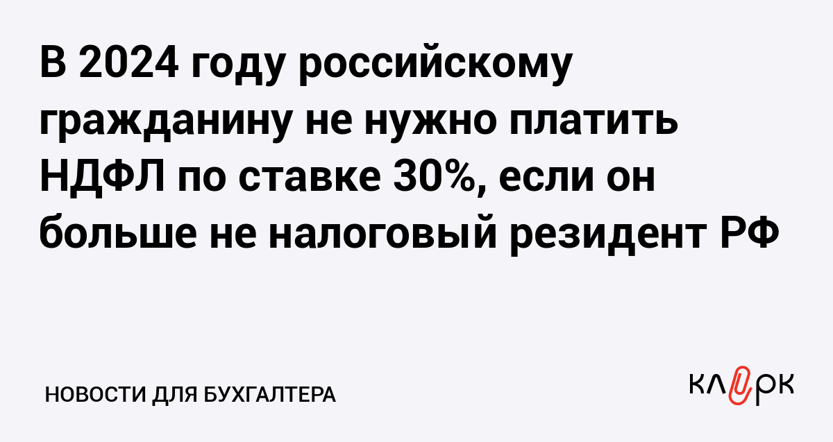 В 2024 году российскому гражданину не нужно платить НДФЛ по ставке 30%, если он больше не налоговый резидент РФ