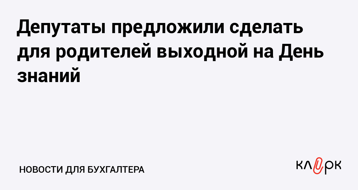 В Госдуму внесли законопроект о предоставлении родителям школьников выходного в День знаний.