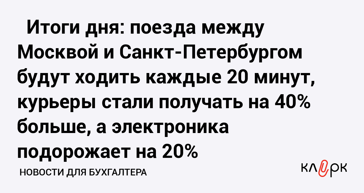 ⚡️ Итоги дня: поезда между Москвой и Санкт-Петербургом будут ходить каждые 20 минут, курьеры стали получать на 40% больше, а электроника подорожает на 20%