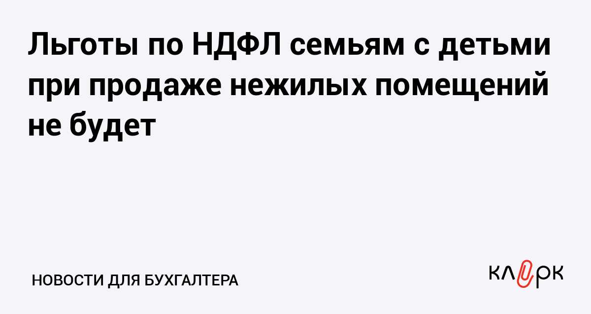 Льготы по НДФЛ семьям с детьми при продаже нежилых помещений не будет