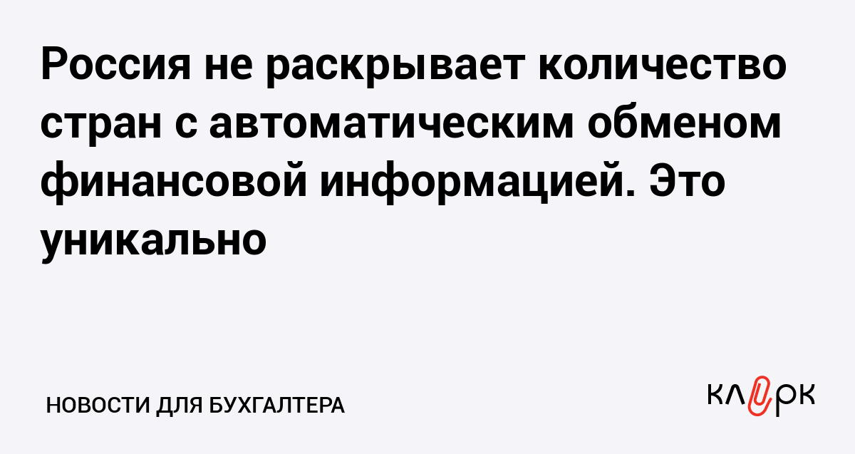 Россия не раскрывает количество стран с автоматическим обменом финансовой информацией. Это уникально