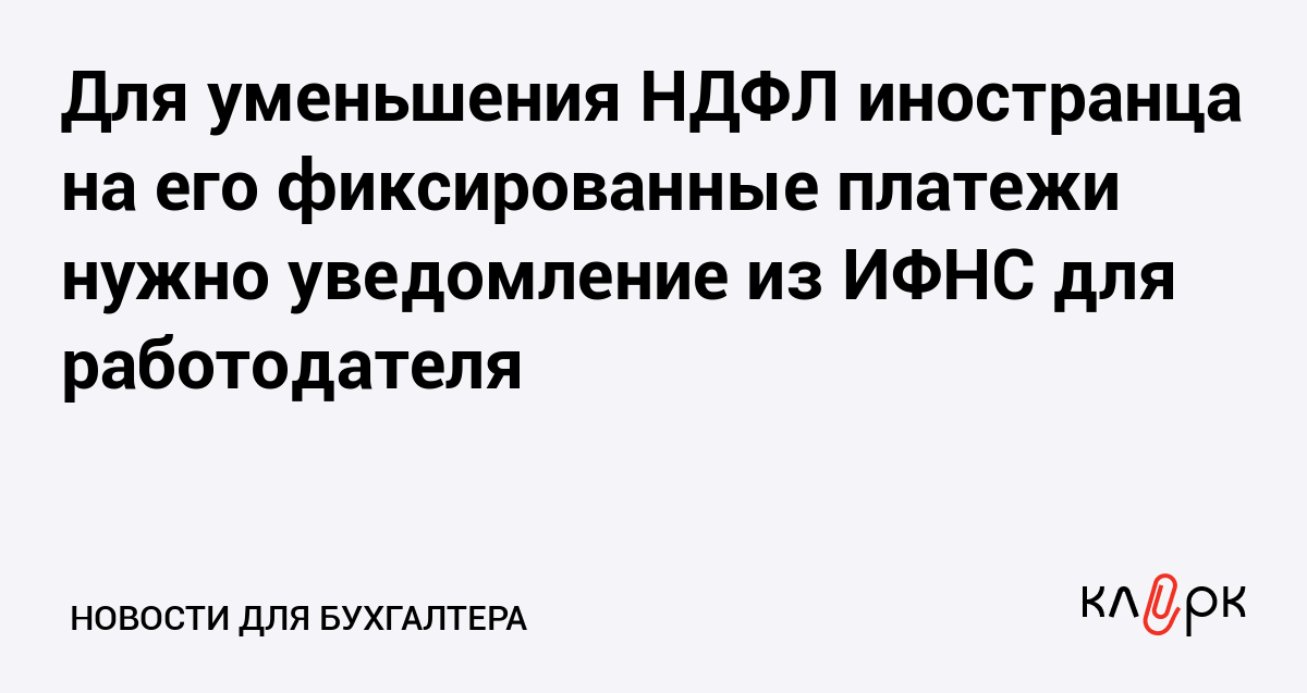Для уменьшения НДФЛ иностранца на его фиксированные платежи нужно уведомление из ИФНС для работодателя