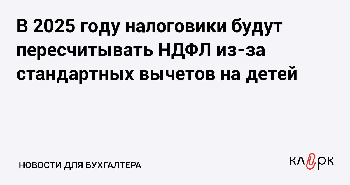 В 2025 году налоговики будут пересчитывать НДФЛ из-за стандартных вычетов на детей