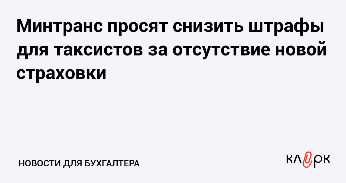 Ассоциация «Национальный совет такси» (НСТ) обратилась в Минтранс с просьбой смягчить наказание таксистов за отсутствие договоров обязательного страхования ответственности перевозчика (ОСГОП).