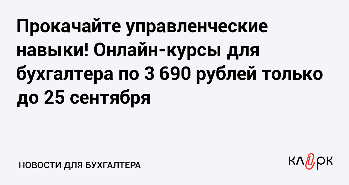 Прокачайте управленческие навыки! Онлайн-курсы для бухгалтера по 3 690 рублей только до 25 сентября