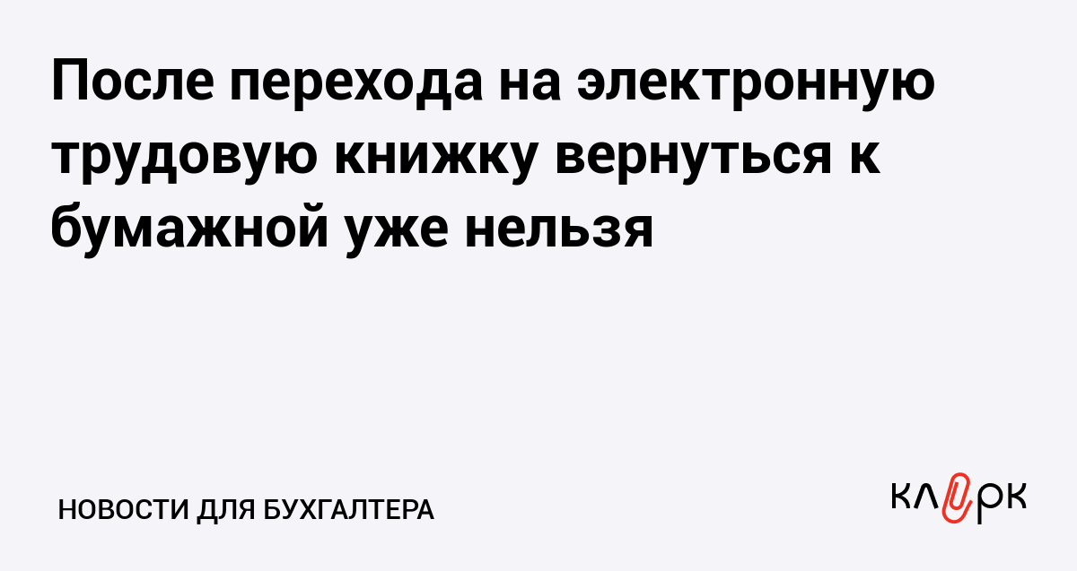 После перехода на электронную трудовую книжку вернуться к бумажной уже нельзя