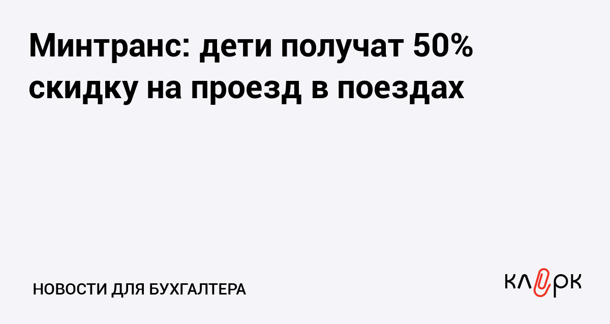 Минтранс: дети получат 50% скидку на проезд в поездах