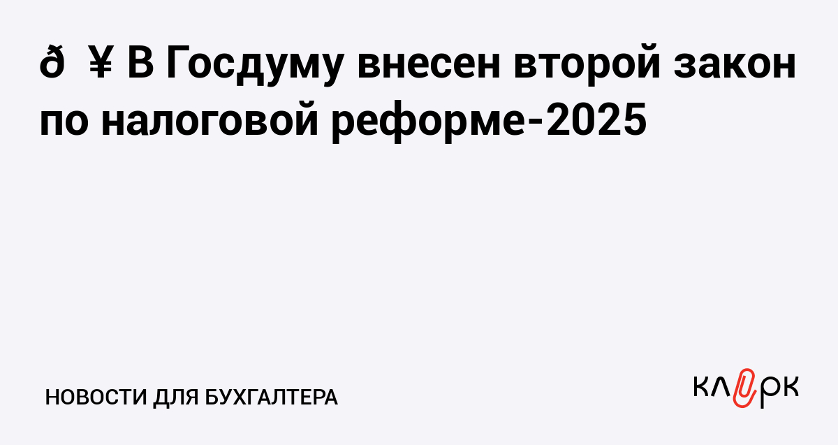 💥 В Госдуму внесен второй закон по налоговой реформе-2025