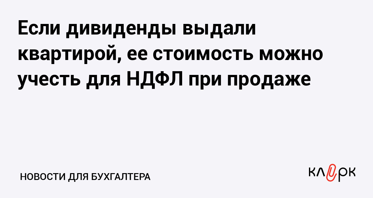 Если дивиденды выдали квартирой, ее стоимость можно учесть для НДФЛ при продаже