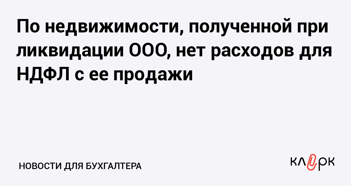 По недвижимости, полученной при ликвидации ООО, нет расходов для НДФЛ с ее продажи