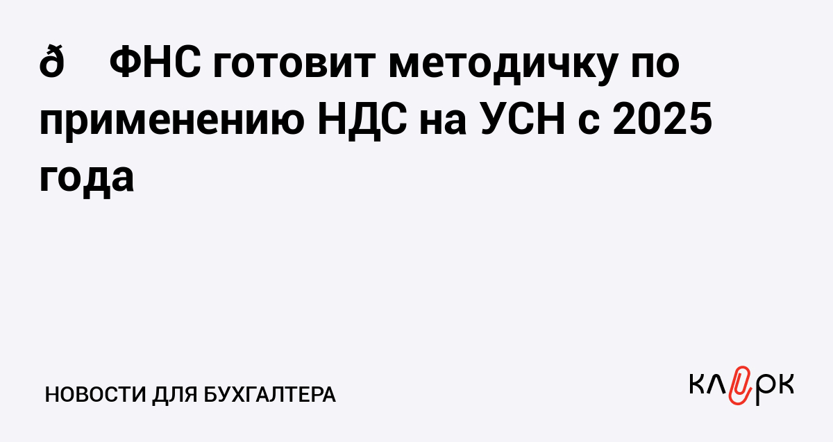 📖 ФНС готовит методичку по применению НДС на УСН с 2025 года