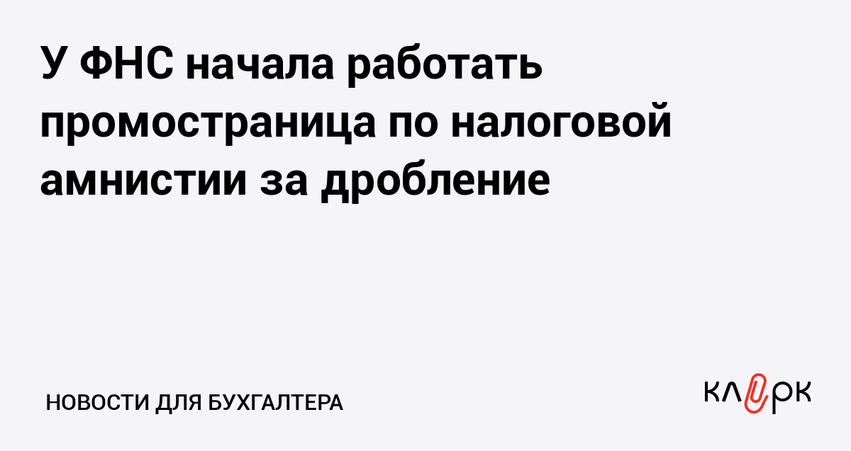 У ФНС начала работать промостраница по налоговой амнистии за дробление