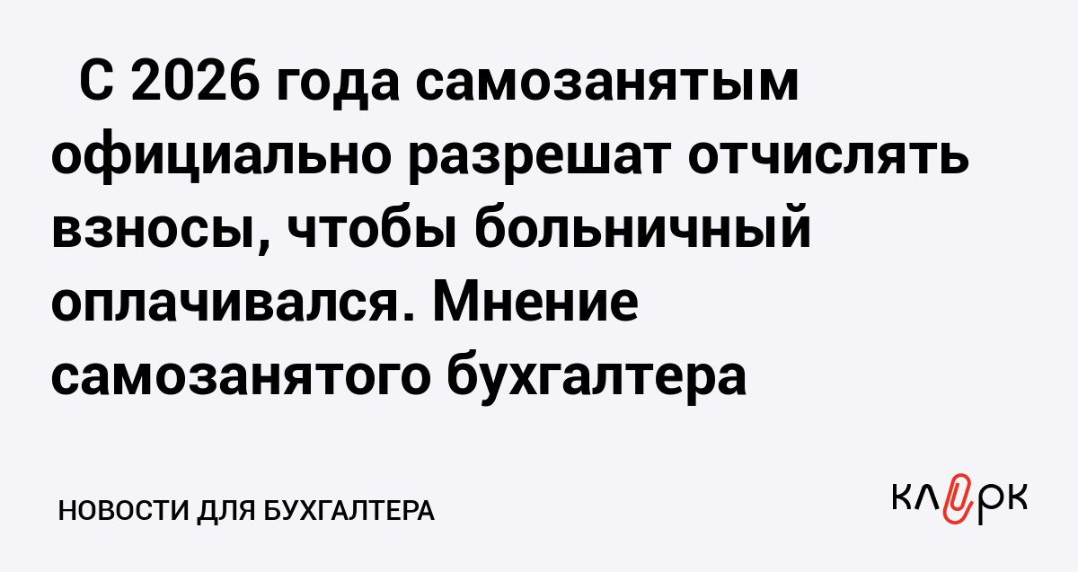 ❗ С 2026 года самозанятым официально разрешат отчислять взносы, чтобы больничный оплачивался. Мнение самозанятого бухгалтера