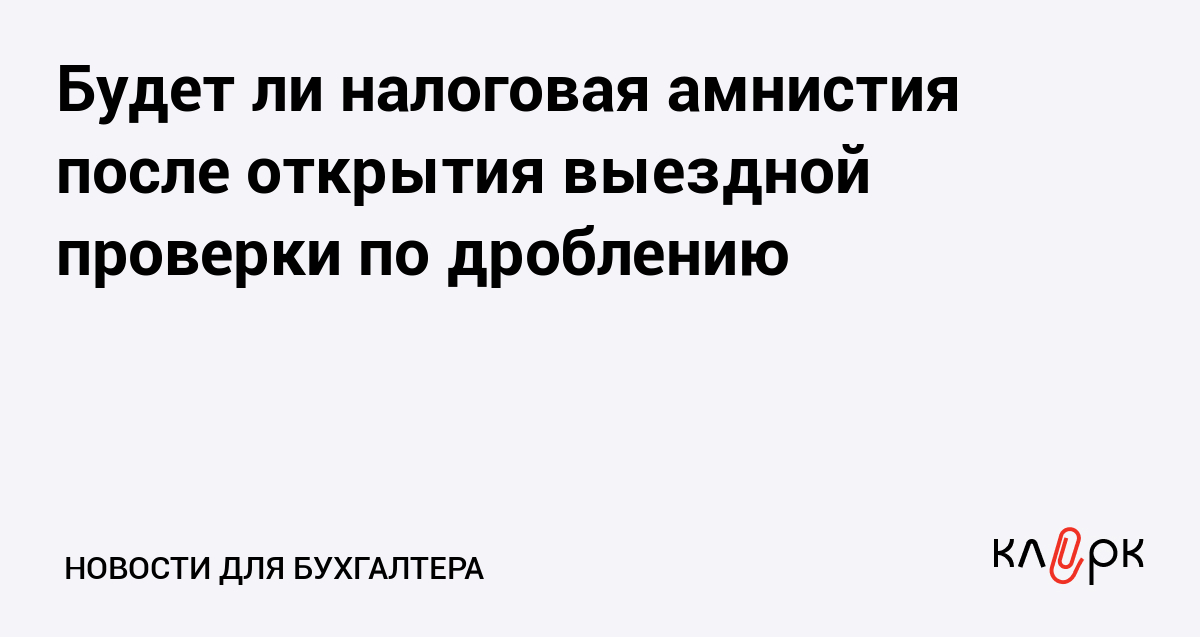 Будет ли налоговая амнистия после открытия выездной проверки по дроблению