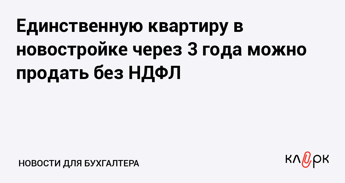 Единственную квартиру в новостройке через 3 года можно продать без НДФЛ
