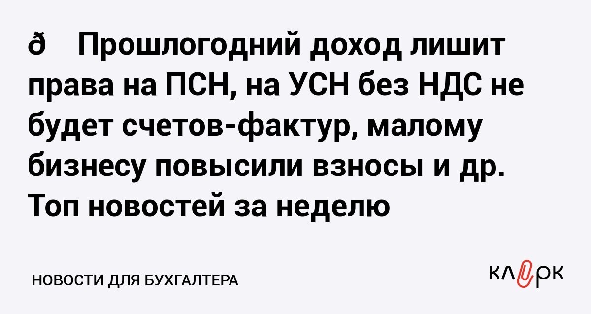 🍁 Прошлогодний доход лишит права на ПСН, на УСН без НДС не будет счетов-фактур, малому бизнесу повысили взносы и др. Топ новостей за неделю