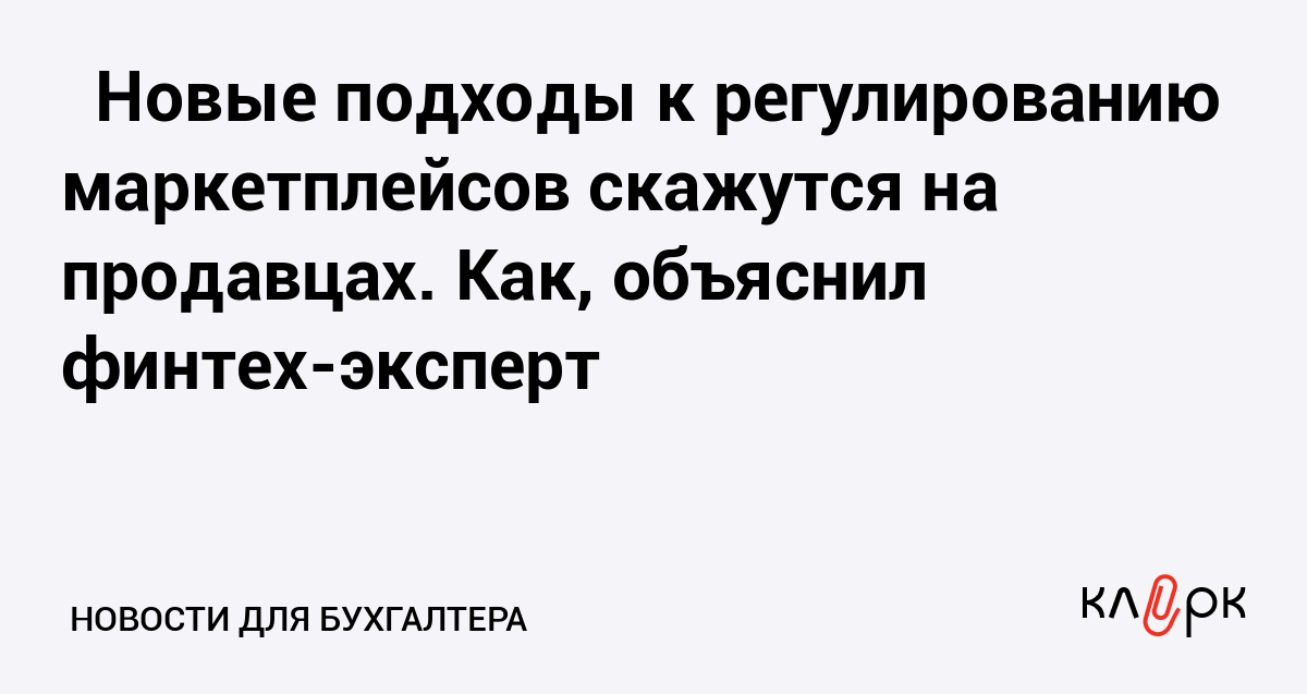 ✅ Новые подходы к регулированию маркетплейсов скажутся на продавцах. Как, объяснил финтех-эксперт