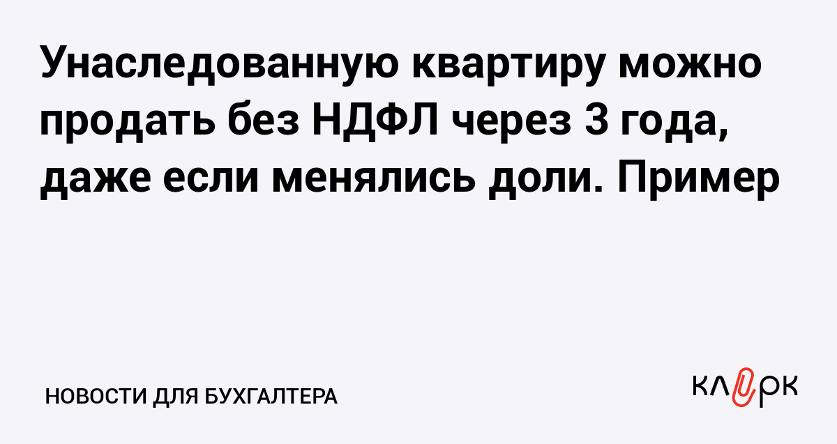 Унаследованную квартиру можно продать без НДФЛ через 3 года, даже если менялись доли. Пример