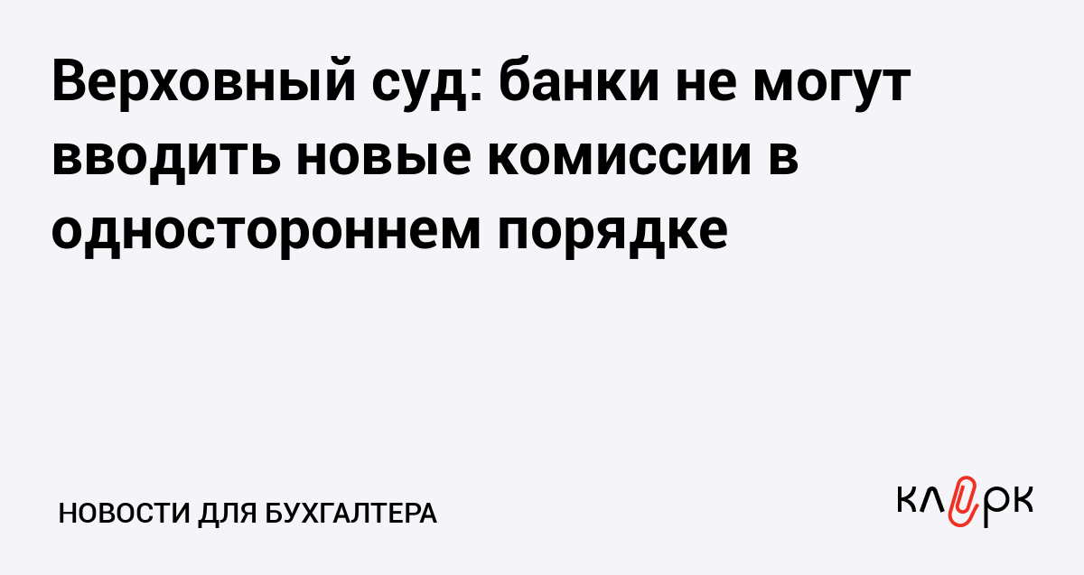 Верховный суд: банки не могут вводить новые комиссии в одностороннем порядке