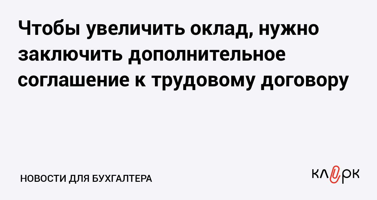 Чтобы увеличить оклад, нужно заключить дополнительное соглашение к трудовому договору