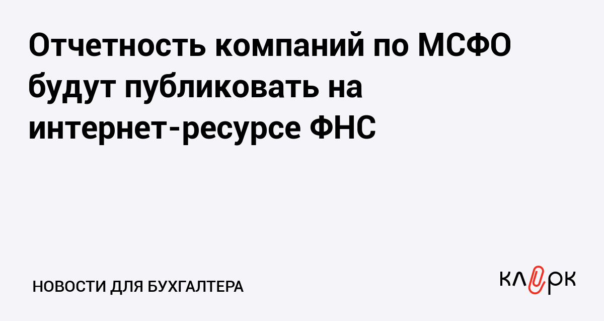 Отчетность компаний по МСФО будут публиковать на интернет-ресурсе ФНС