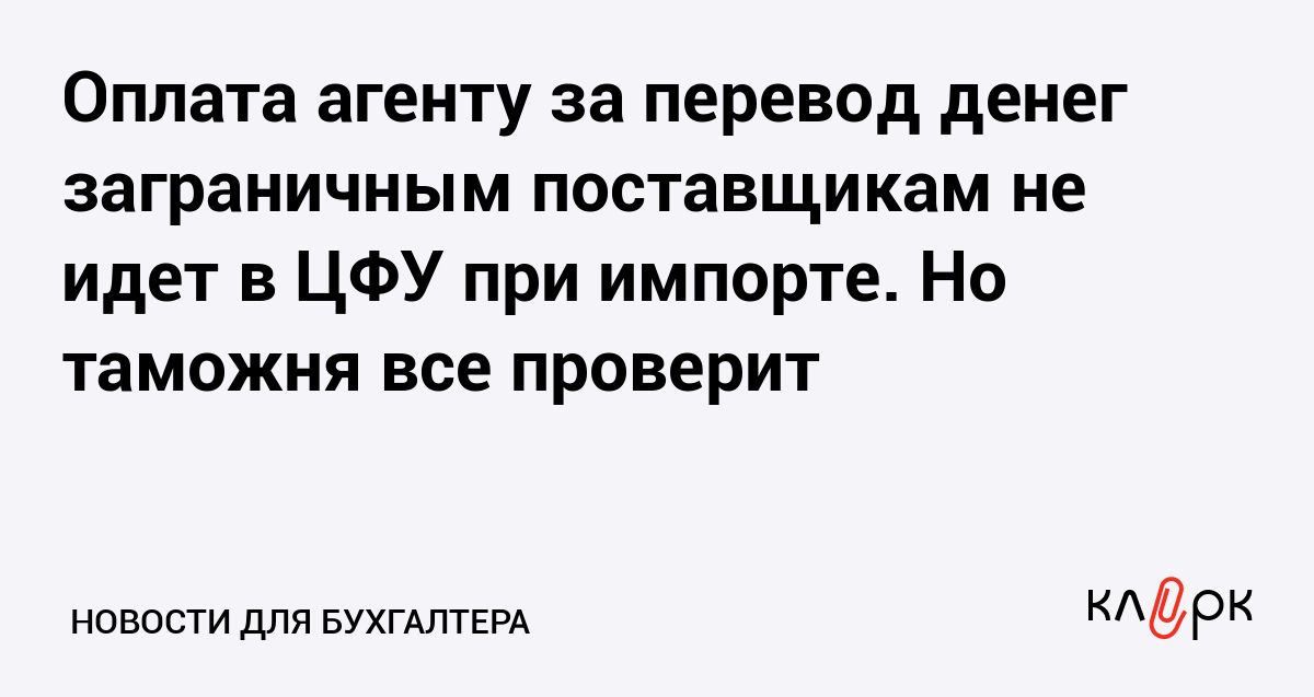 Оплата агенту за перевод денег заграничным поставщикам не идет в ЦФУ при импорте. Но таможня все проверит