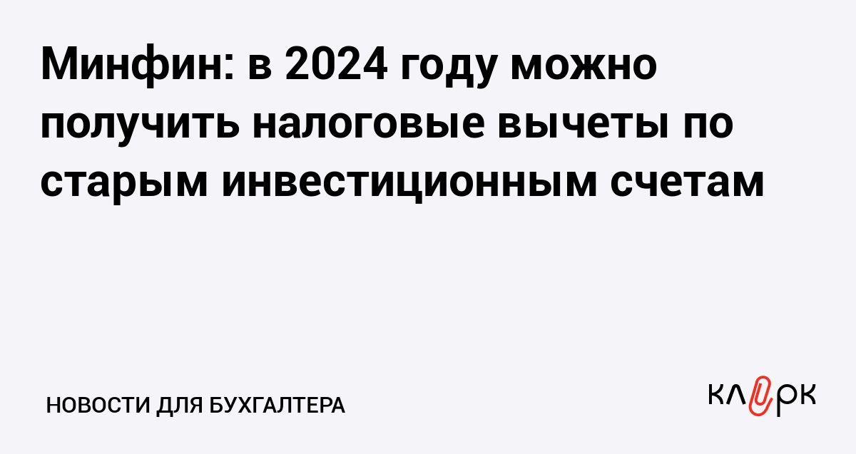 Минфин: в 2024 году можно получить налоговые вычеты по старым инвестиционным счетам