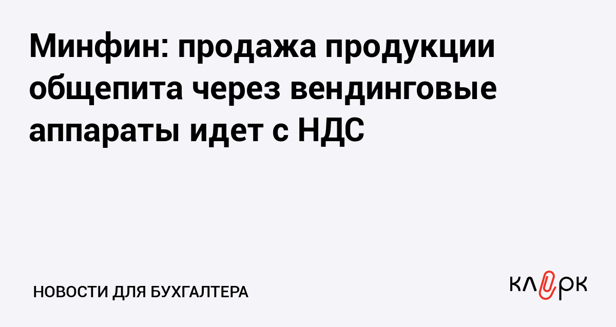 Минфин: продажа продукции общепита через вендинговые аппараты идет с НДС