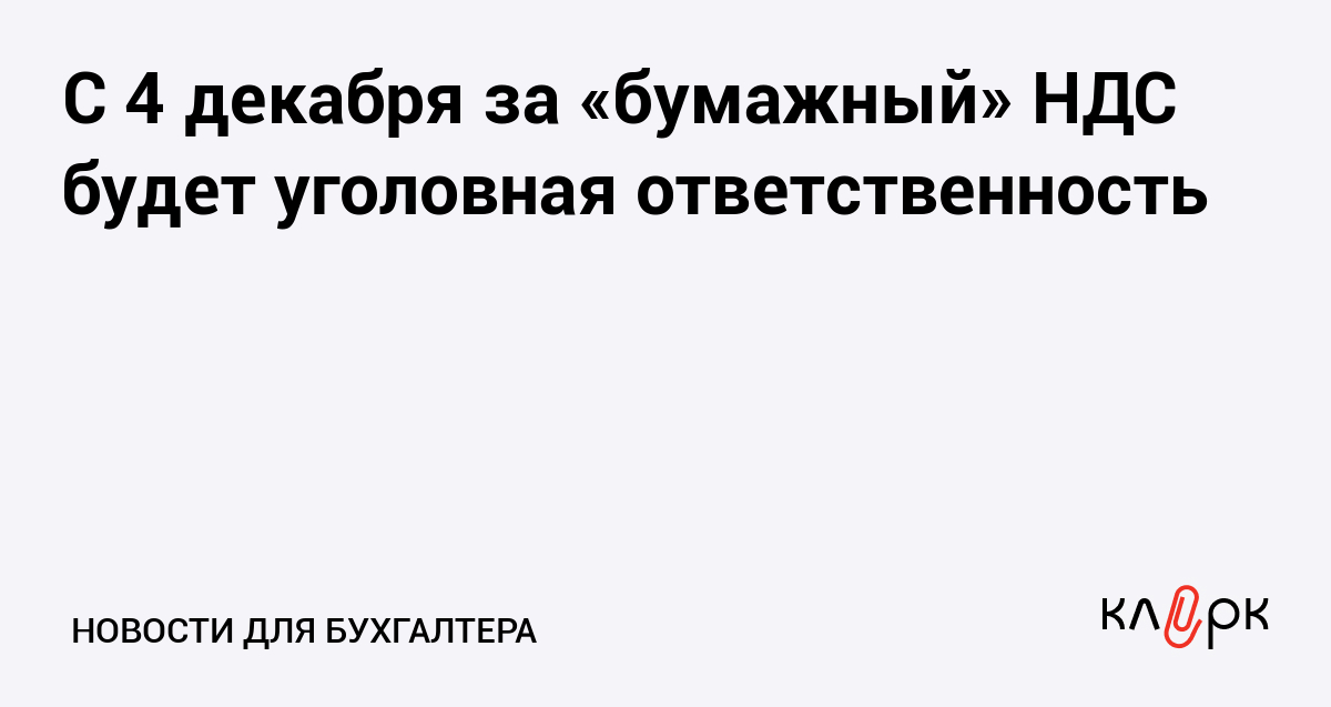 С 4 декабря за «бумажный» НДС будет уголовная ответственность