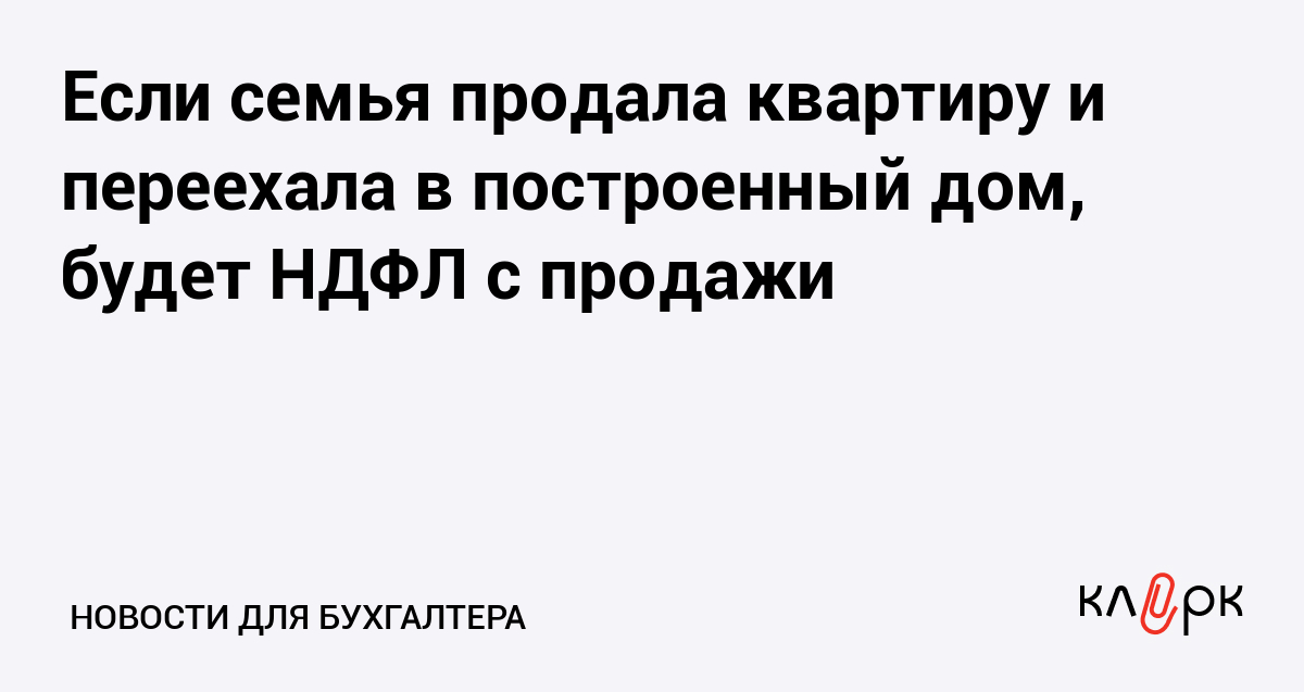 Если семья продала квартиру и переехала в построенный дом, будет НДФЛ с продажи