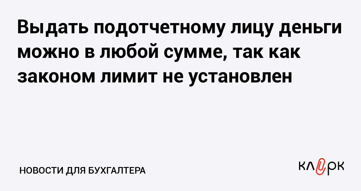 Выдать подотчетному лицу деньги можно в любой сумме, так как законом лимит не установлен