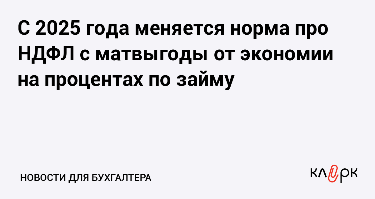 С 2025 года меняется норма про НДФЛ с матвыгоды от экономии на процентах по займу