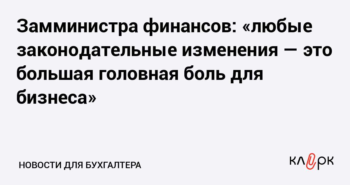 Замминистра финансов: «любые законодательные изменения — это большая головная боль для бизнеса»