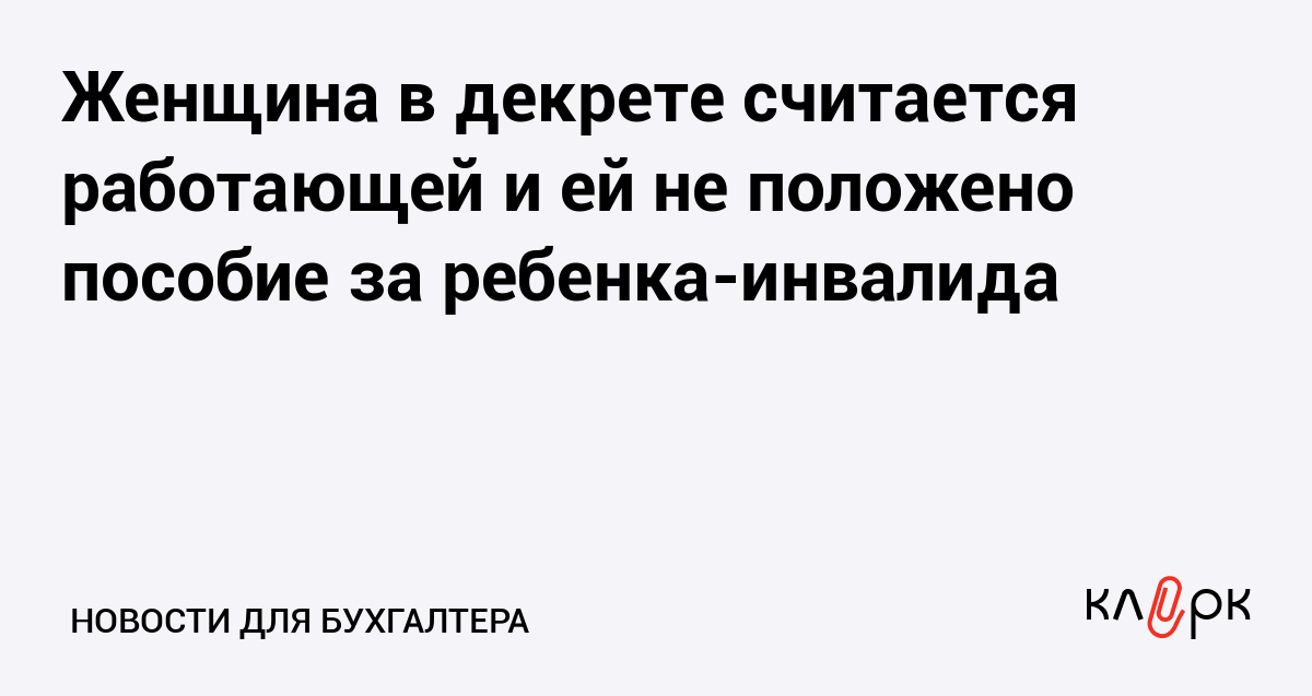 Женщина в декрете считается работающей и ей не положено пособие за ребенка-инвалида