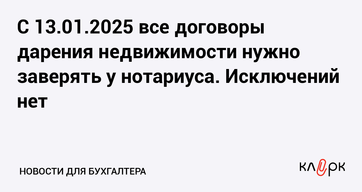 С 13.01.2025 все договоры дарения недвижимости нужно заверять у нотариуса. Исключений нет